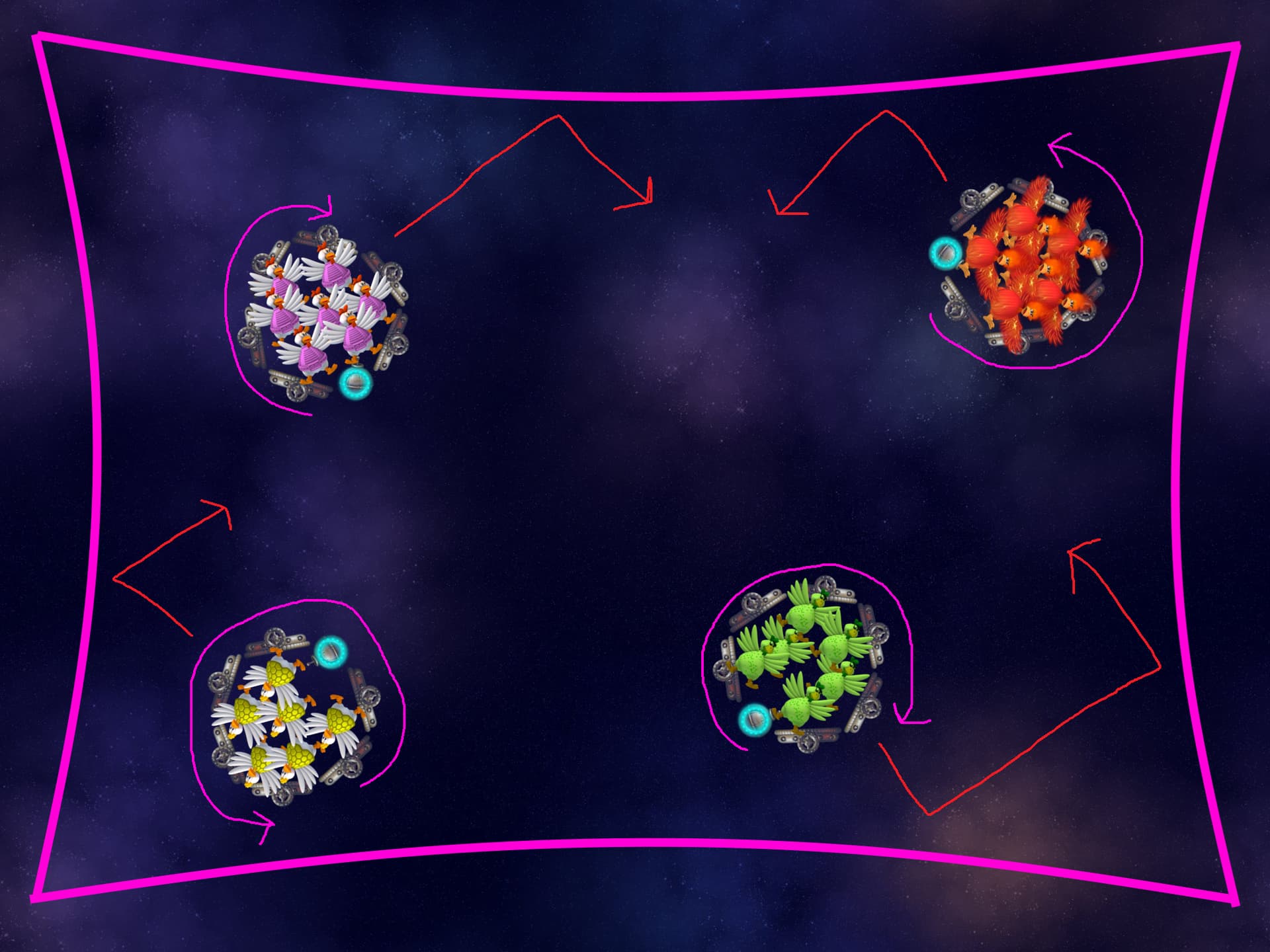- Incase this wasnât clear enough a snake should be formed between chickens and barriers but should have multiple variants. Here are some I made:
