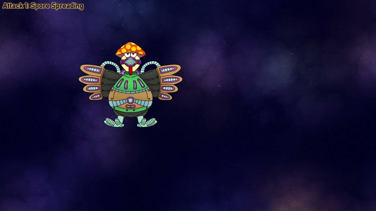 The boss will spread out purple spores in 12 directions.