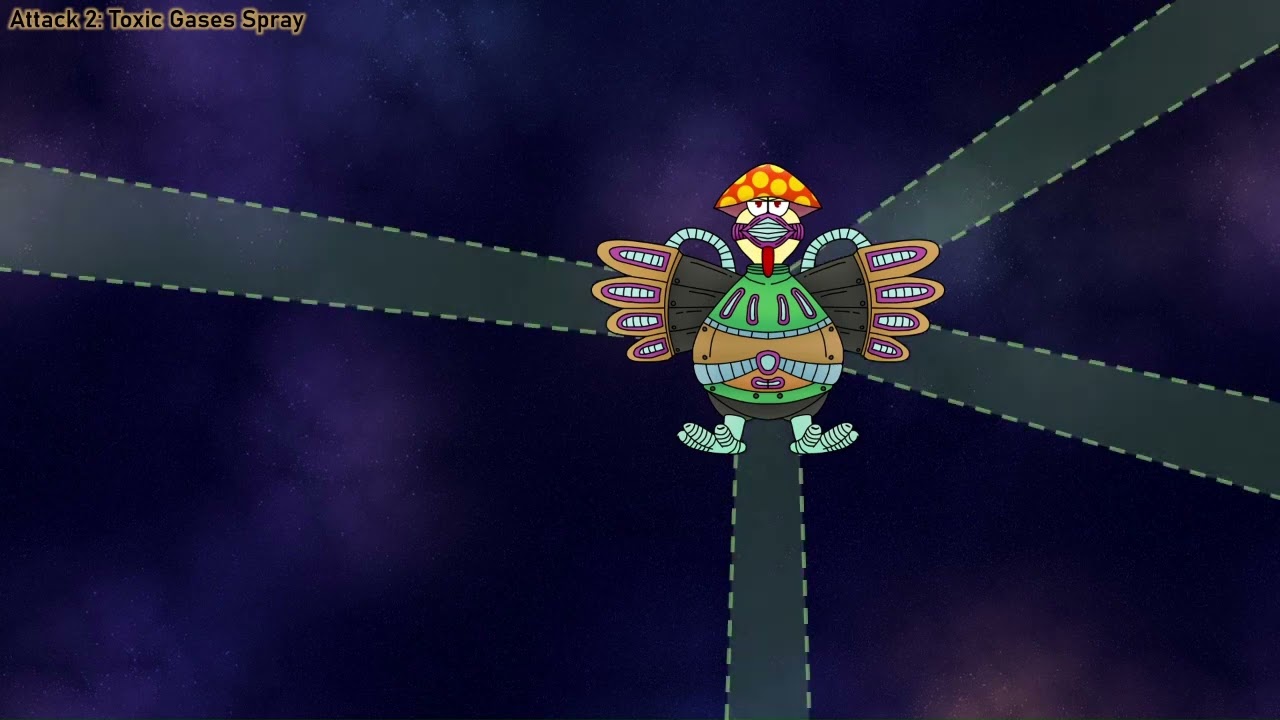 Toxic gases will be sprayed out in four random directions. This attack will be repeated 3 times consecutively.