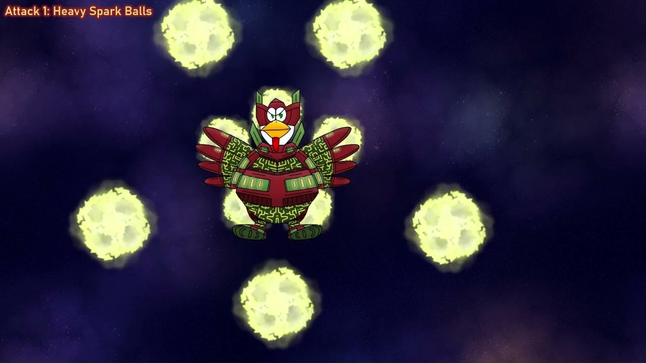 Spread out 2 circles of 5 spark balls slightly expanding in size in alternating directions. This attack happens at any position in the screen where the boss is staying. High occurence frequency.