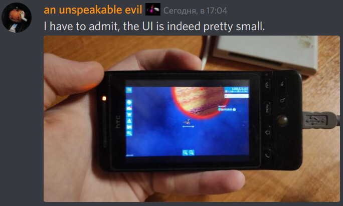 The phone on the picture is HTC Hero that has an ARM11 CPU architecture and can’t even display the icon of a CIU .apk, runs Android 1.5 under normal circumstances (4.0.3 in my case). It’s physically impossible to launch it here.