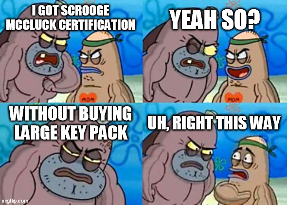 I guess IA will do a fix to not let people get easily Scrooge McCluck Certification by buying keys. Probably, mayhaps
