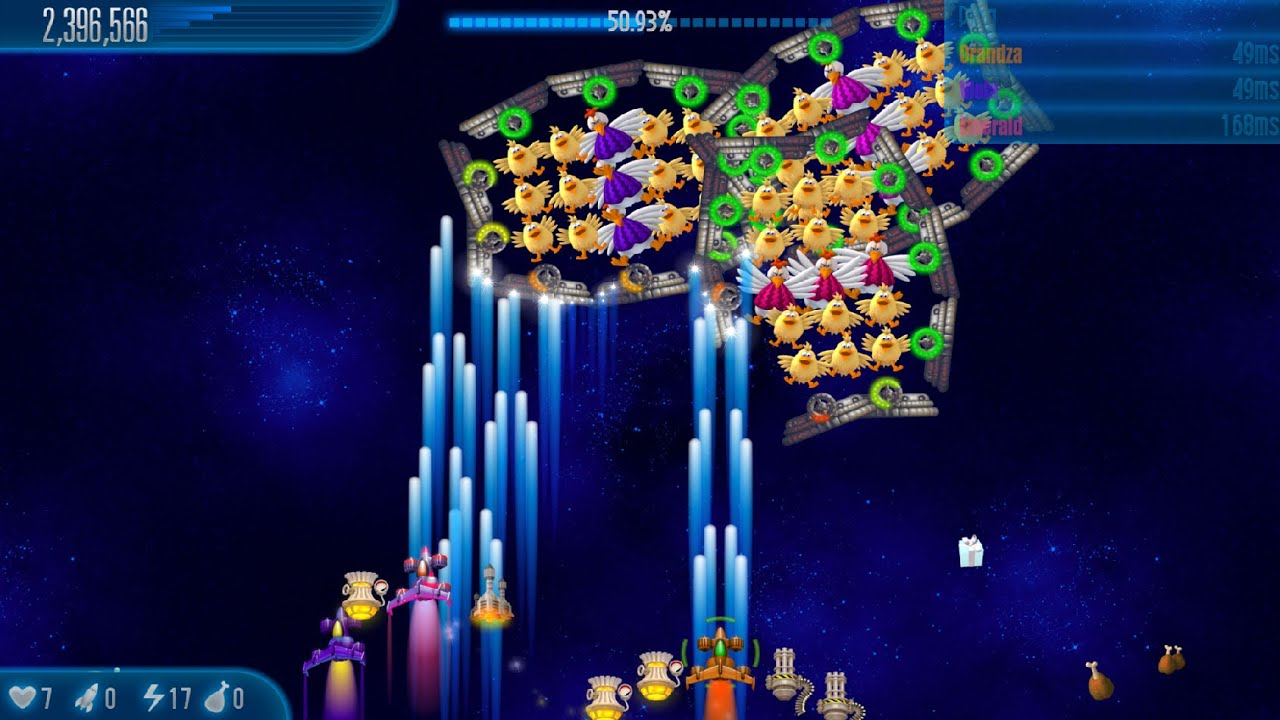 Spaceship can be mounted on weapon, your current weapon is your spacechip, from 0-10 difficulty, egg cannon will spawn in chicken waves and chickens are main boss.In forum, some posts are flagged, now in game you can flag spaceship, after some mins , it will banned. epic joke.