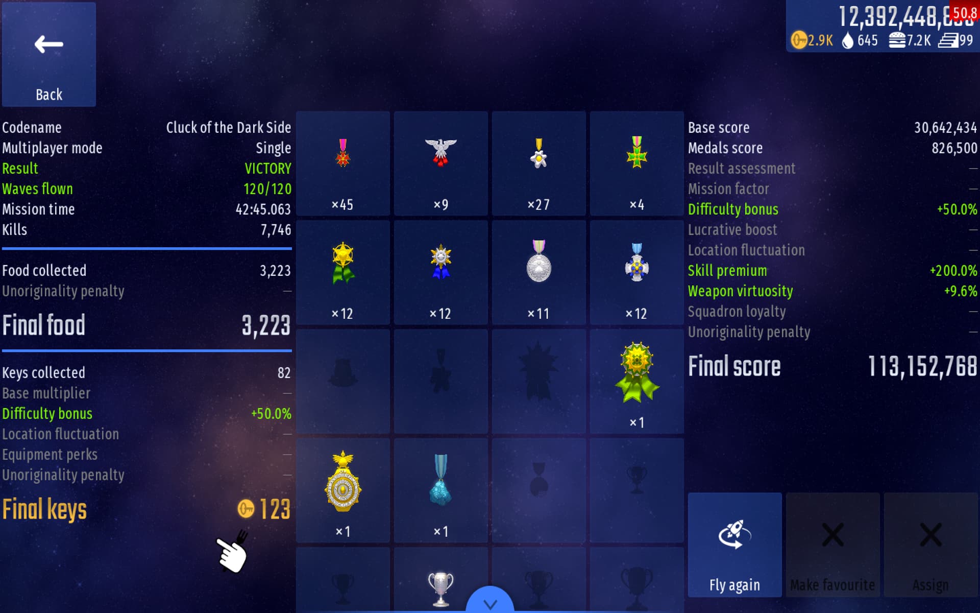 But in Weekly Challenge, if completed this mission, it alway reward “Very Hard Campaign” trophy. In old version before update for Weekly Challenge, we can use Skill “Superstar Hero”, it will reward “Elite Campaign” trophy when mission completed. “Cluck Of The Dark Side” mission has 120 waves; difficulty 0-100%, this mission must be reward “Very Hard Campaign” like Space Race, Invasion Anniversary,…