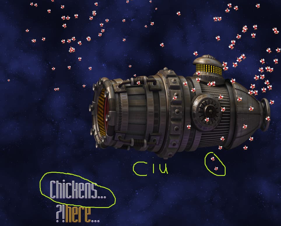 You do not know? I tell you: In the normal CI5 cutscene, especially the scene where Authentic Hero returns to Earth to prepare install the device and the chicken puppet appears from Earth. That chicken puppet texture is Regular Breed, not Freckled Breed, and striped shirt like CI4 varirant. Now the developer can make another flying bat chicken sprite for CI4U halloween cutscene and flying chicken with costume for another seasonal.