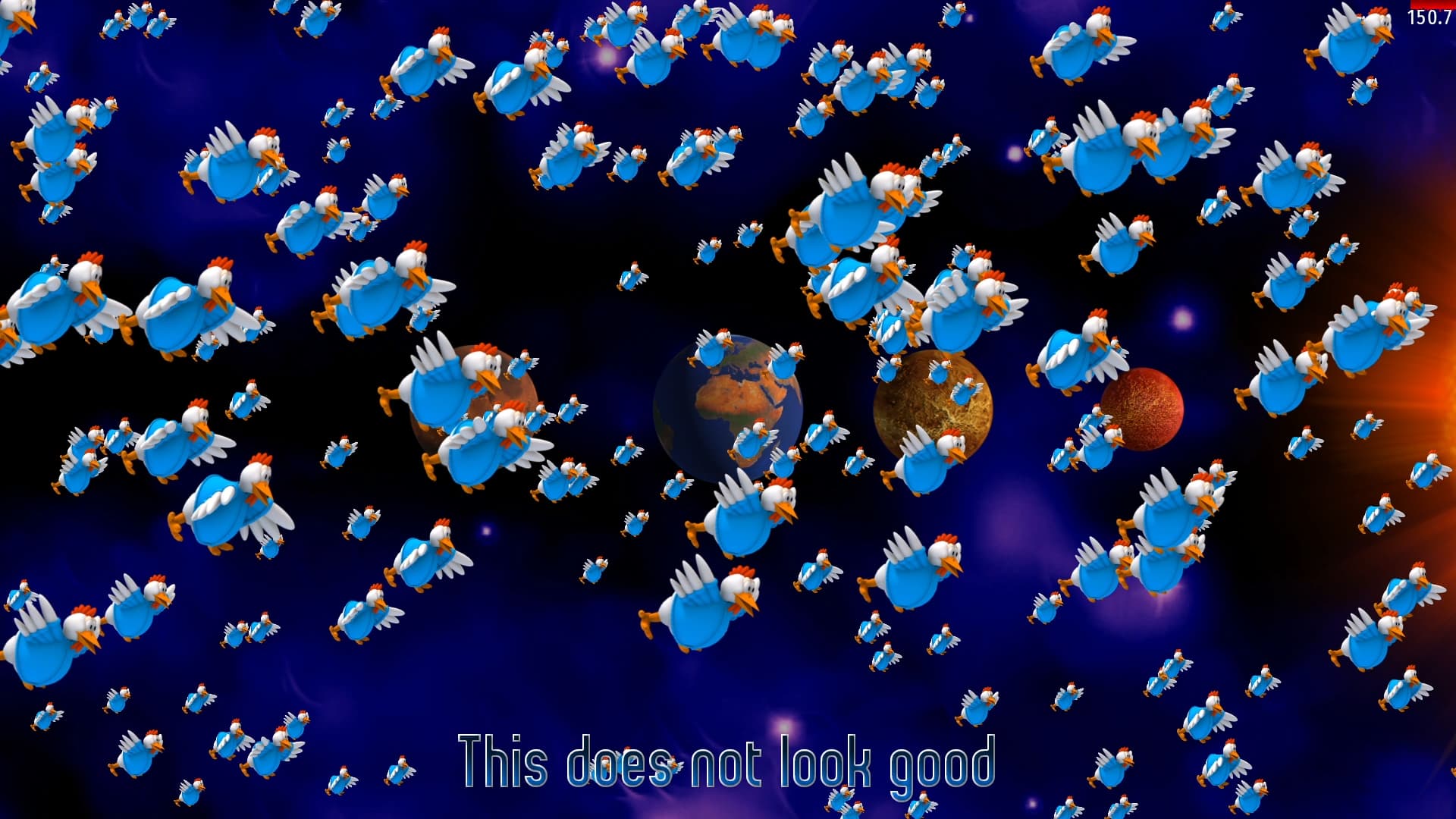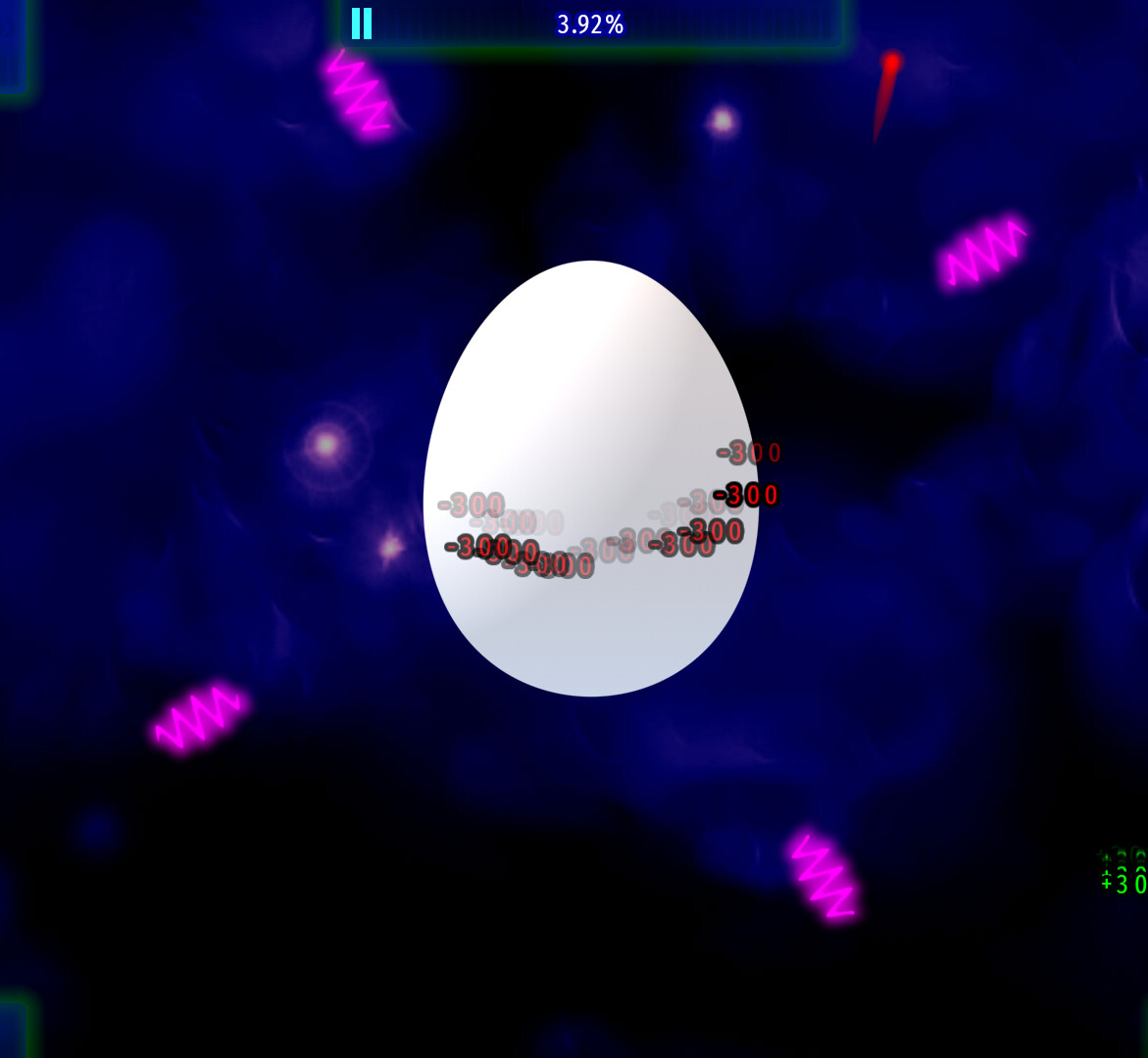 7- “Show 'em who’s Boss” and “Fight”: This Military Chicken shoots 3 pink bullets, and those bullets’s speed don’t match with the difficult of the game (wave 10/110, with SSH skill, the actually difficulty is over 50%). Oh, Boss’s health doesn’t match with the difficulty, too. For the the Big Chicken, their speed is too fast than anything i expected.