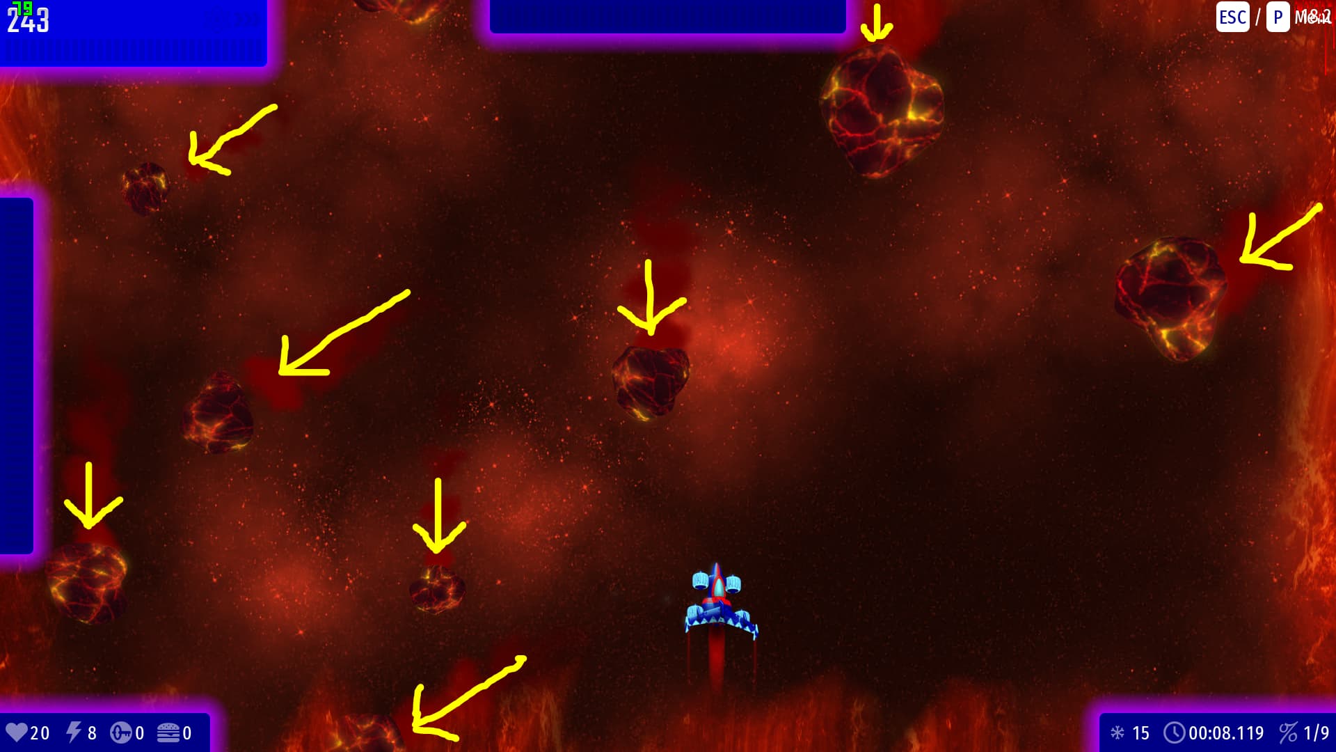 Better understandable: Make each meteors independently in their direction, just like wave “Asteroid Flurry!” from CI1U.