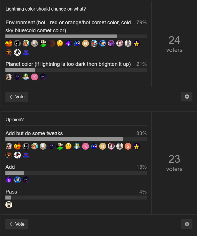 this reminds me of an idea to have each planet’s lightning colors match when players are on their mission, but it seems like that was rejected. but I hope this gets added