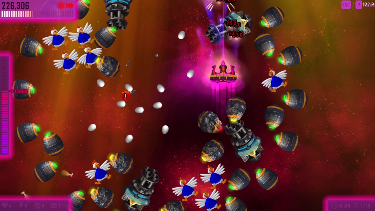 Some examples: Armored Chickens and Eggs from Gatling/Military Chickens render ahead of ICBM storms, but Eggs from Crazy Squawker aren’t.