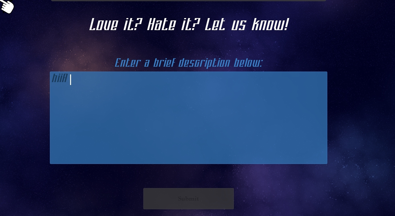 Also @InterAction_studios, in the feedback screen if you didn’t write nothing there should be a message telling you to write something if you click “Submit”