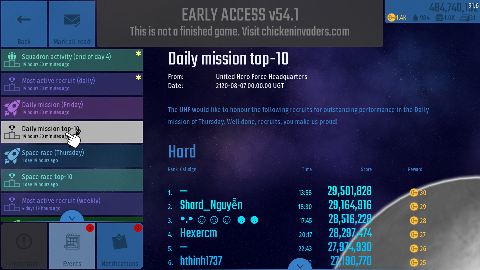 There is a bug In Chicken Invaders Universe Early Access