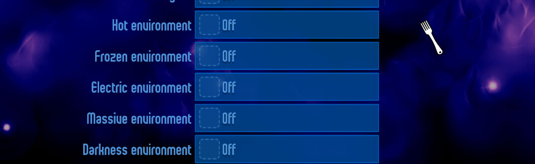 Can you also put all of this into one menu called “Toggle Environment”? IMO, this cramped up the menu quite a lot, not to mention the rest of unlockables also can be merged into dividual menus.