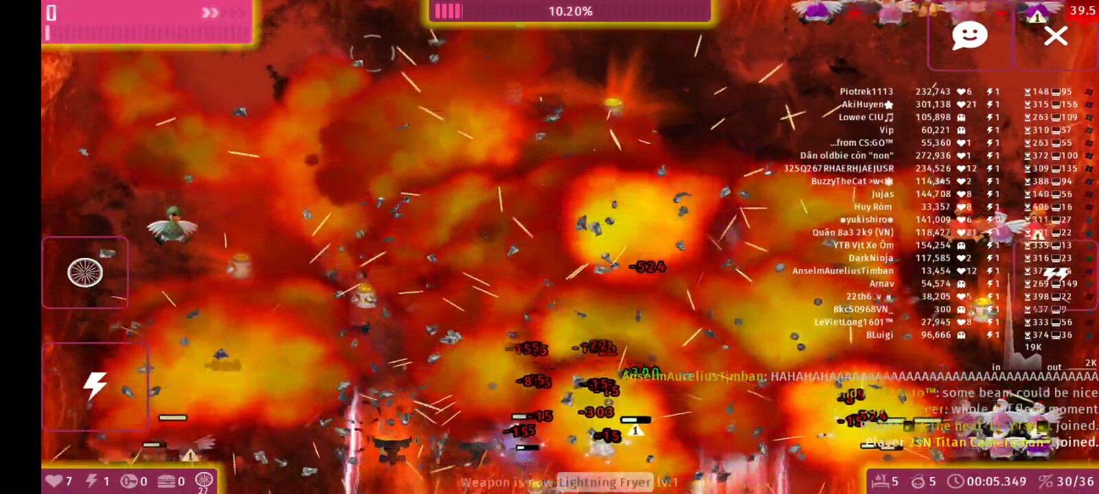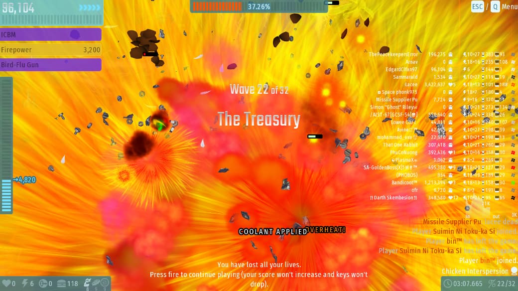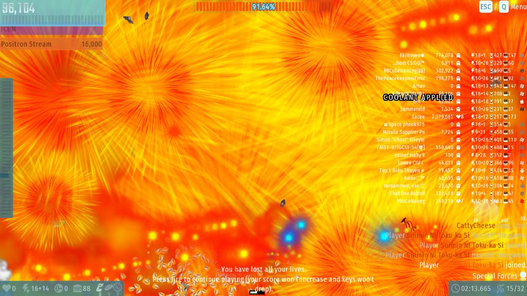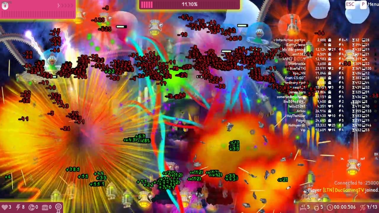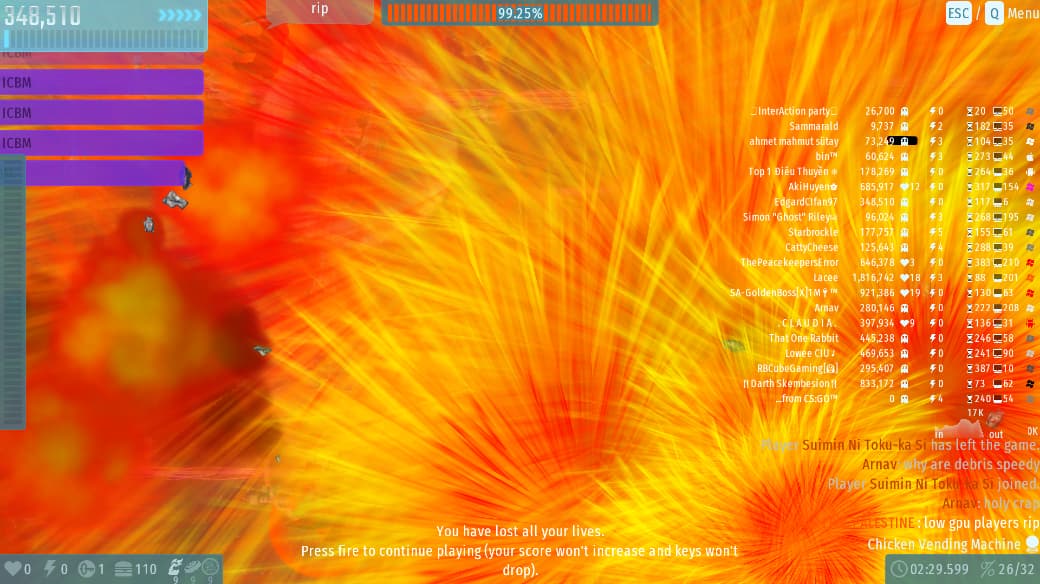 The 1st party goes well… But alot of spamming icbm , many weapons , players and enemies but my pc still handled and gave me 10+ fps.