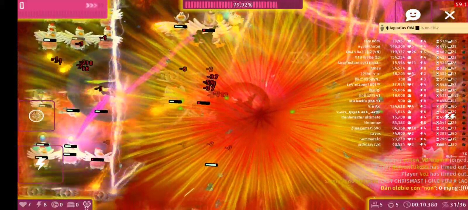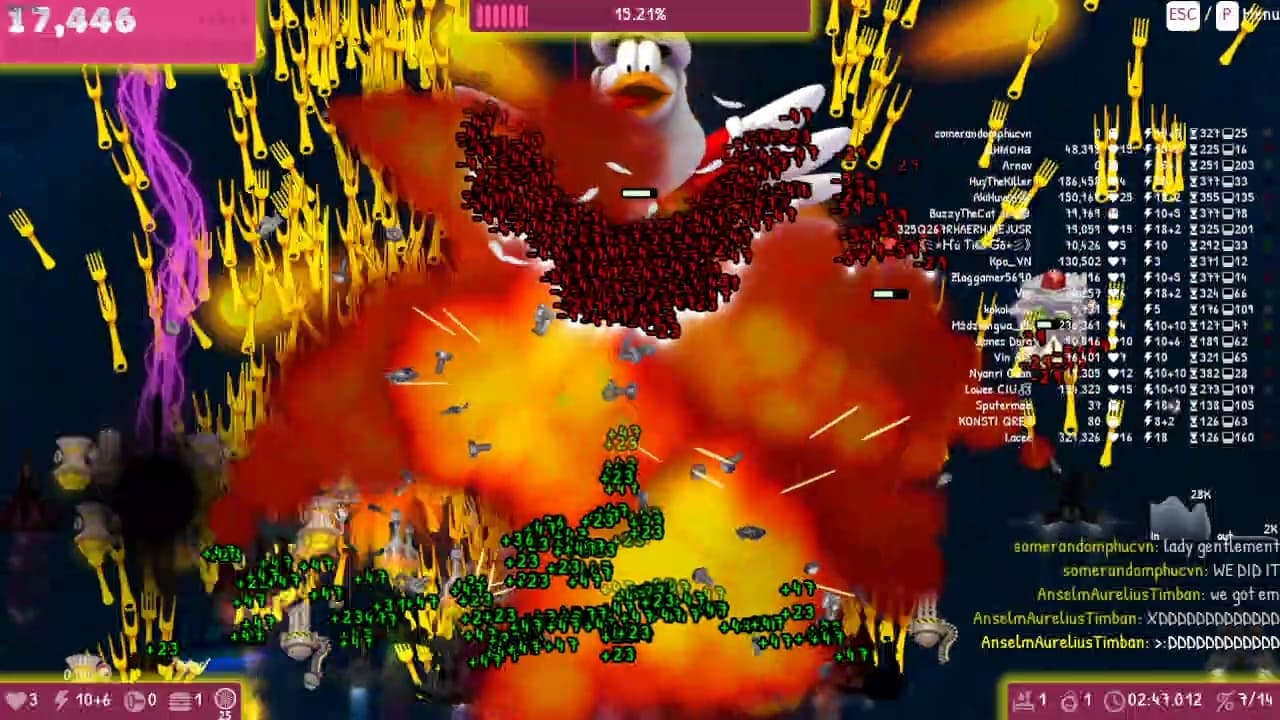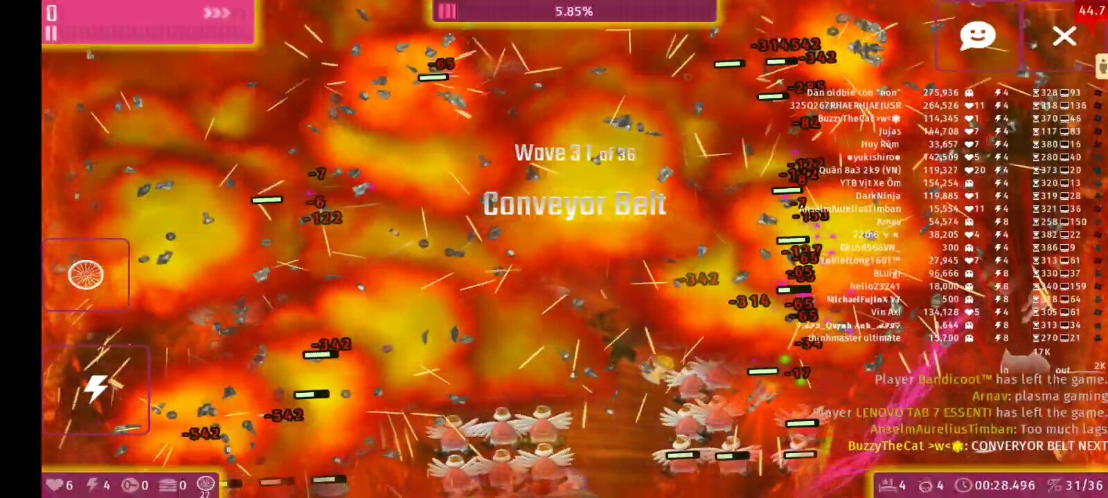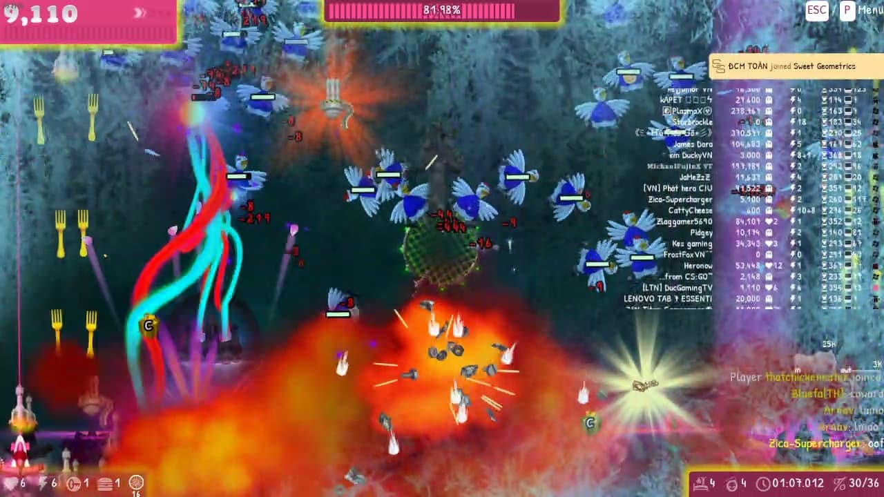The 1st party goes well… But alot of spamming icbm , many weapons , players and enemies but my pc still handled and gave me 10+ fps.