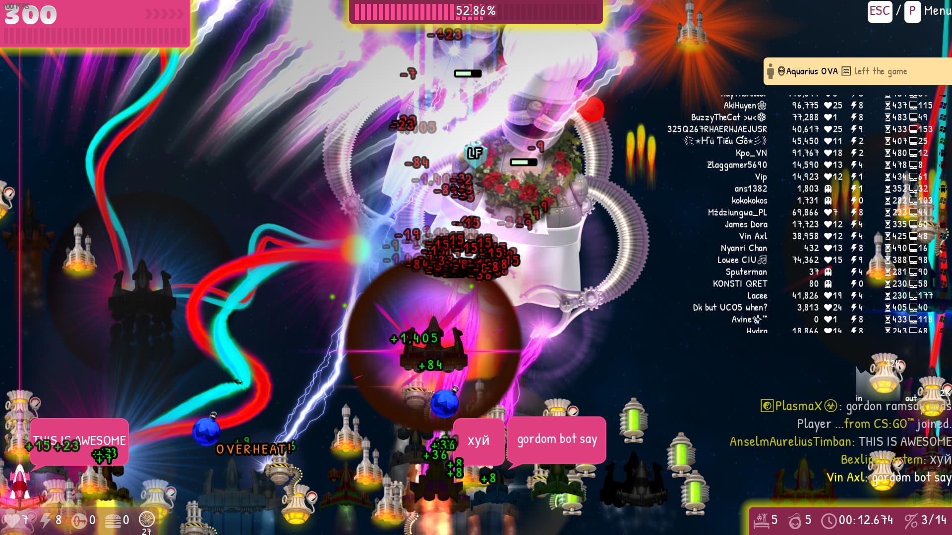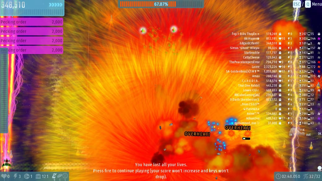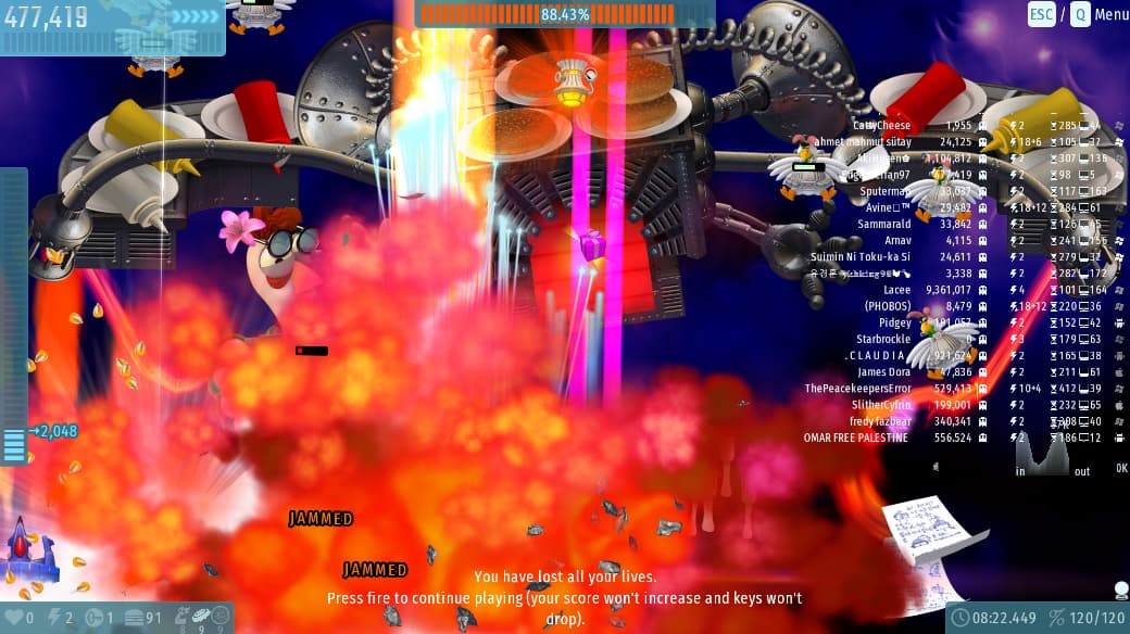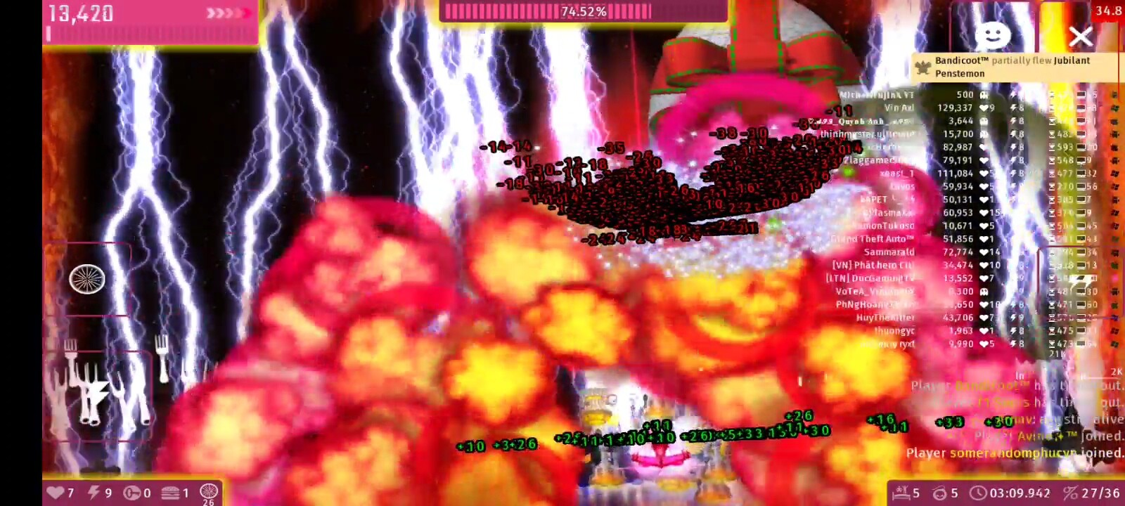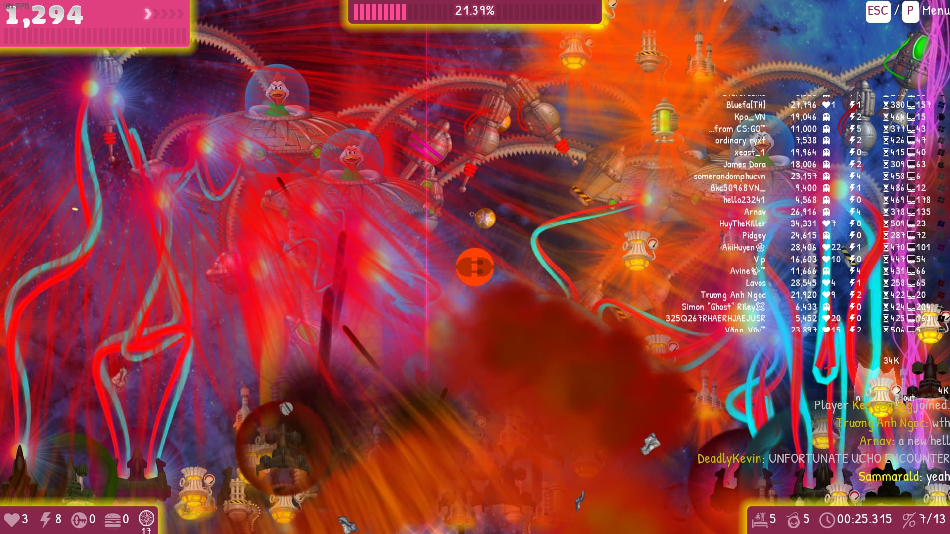 The 1st party goes well… But alot of spamming icbm , many weapons , players and enemies but my pc still handled and gave me 10+ fps.