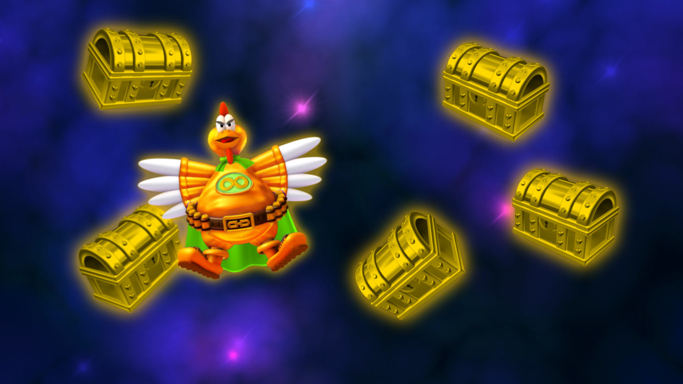 Golden Infinity is an infini-chick wearing a golden jumpsuit. It doesn’t go with his brother because he’s their brother-in-law. He has a health of 175% of a normal inifini chick.