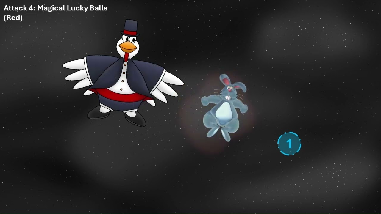 In this attack, the magician chicken will use it’s magic stick to shoot sparkling particles at you! The attack start with 5 sparkling stars in easy difficulties, and 3 sparkling stars in harder difficulties.