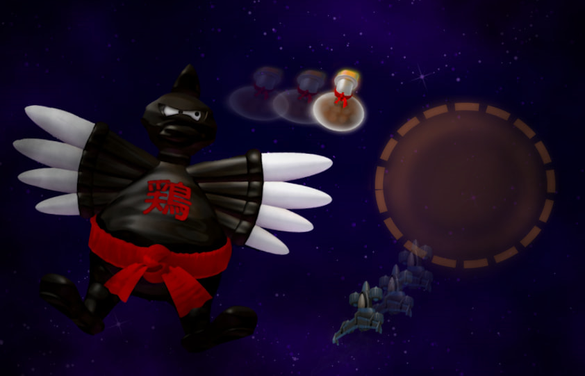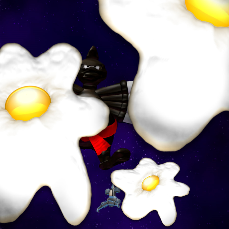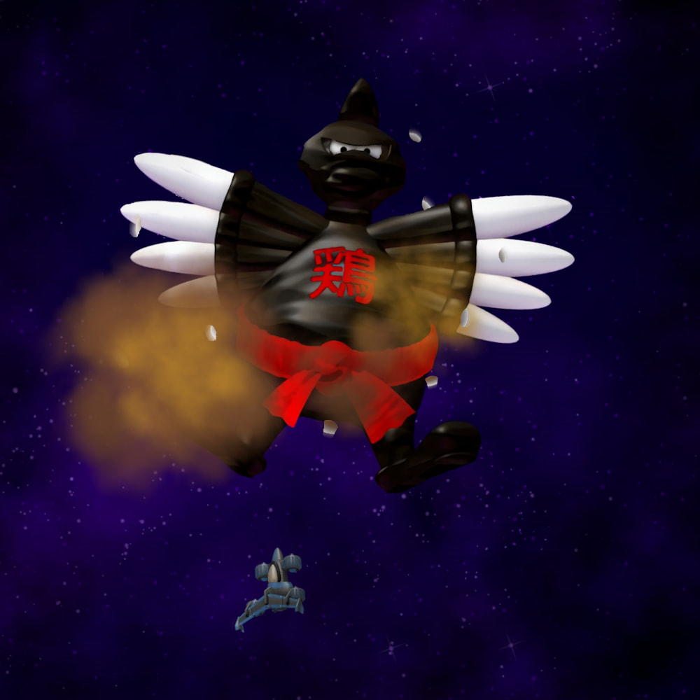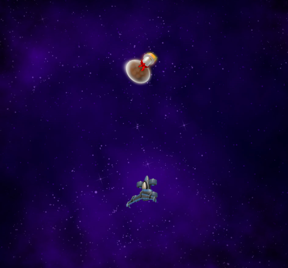 The boss throws eggs but not at the ship, it’s thrown at the screen to cover it.