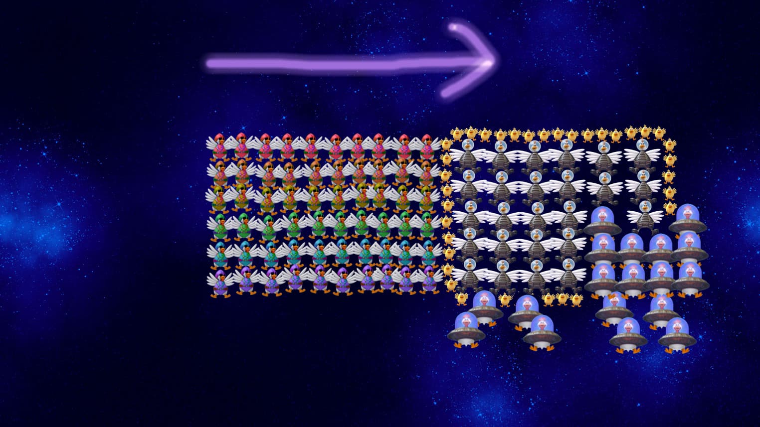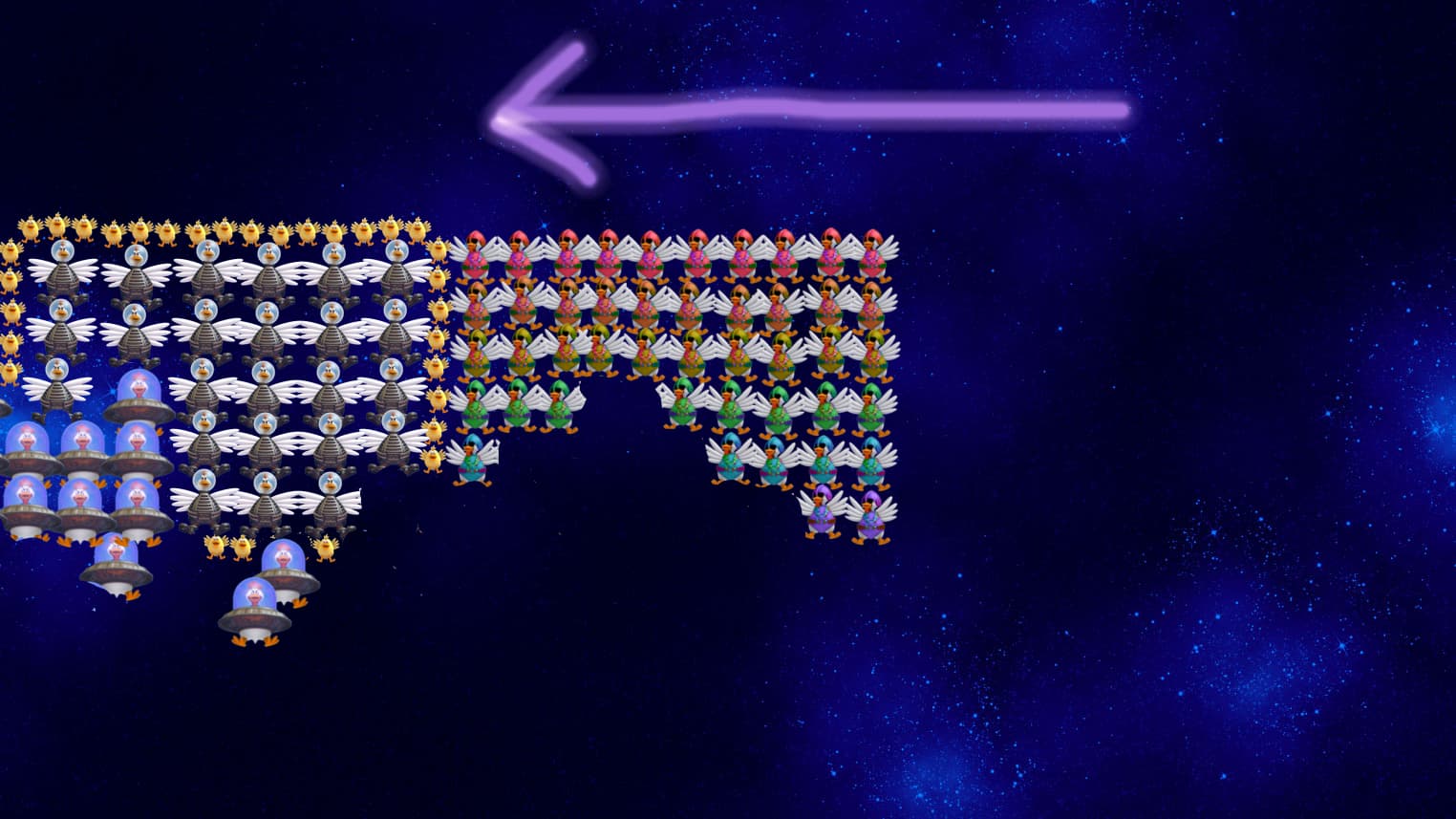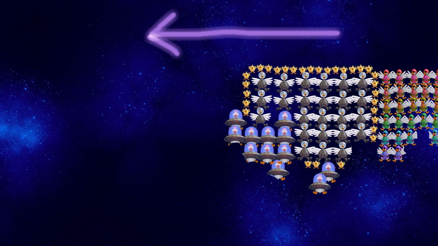 First, the whole formation would appear from the left side of the screen and move forward until it disappears on the right side.
