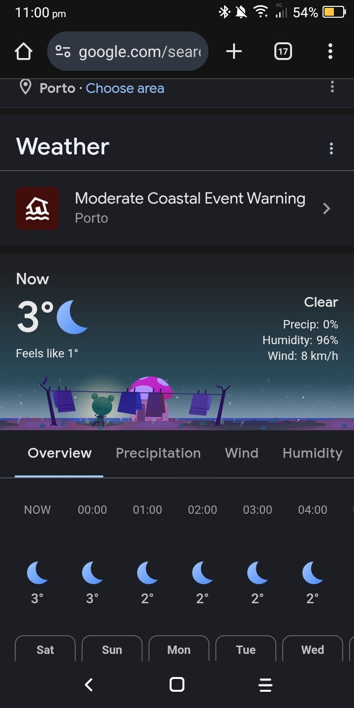 In my city, the minimum temperature is around 4°C at about 5–6 AM but that only happens when the wind comes from the south, which is the desert (in case you don’t know, desert temperatures at night are extremely colder than in coastal cities).