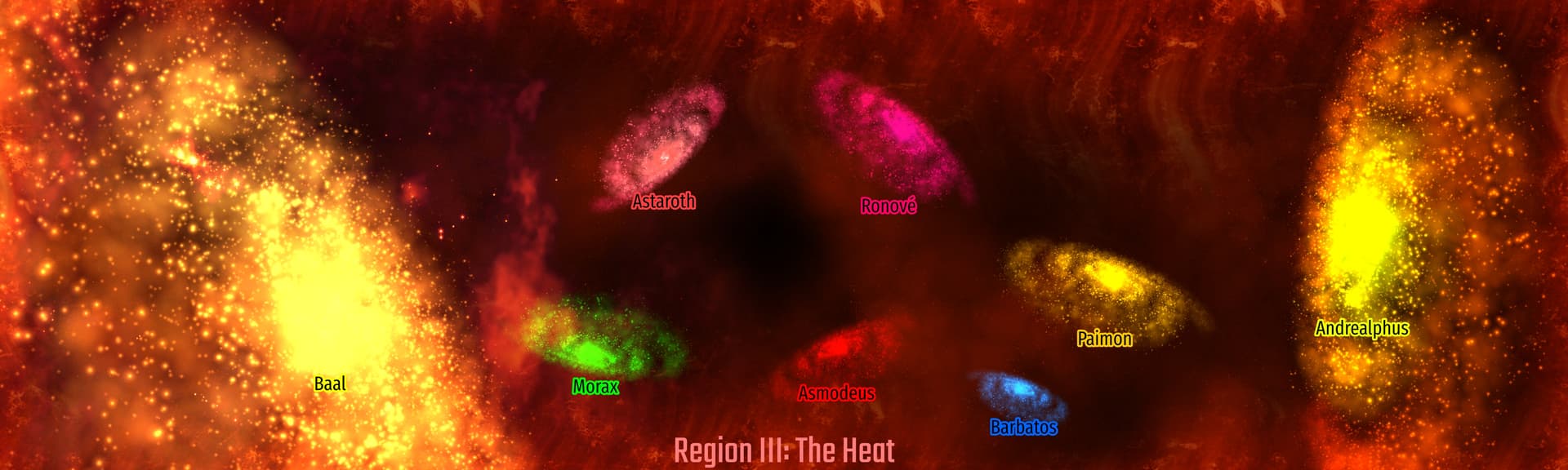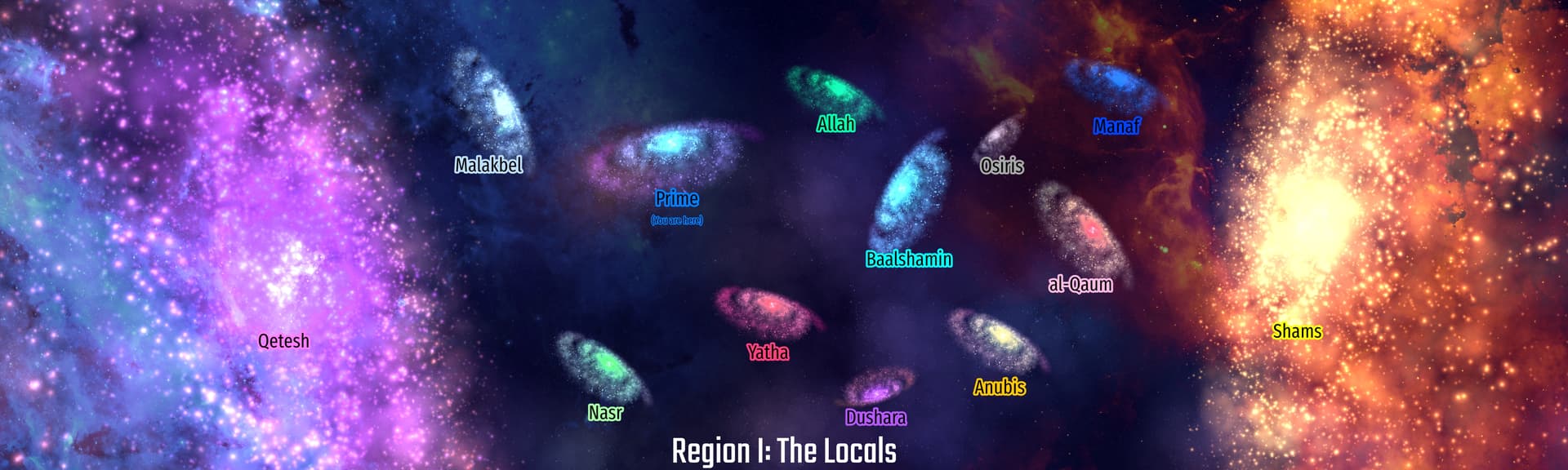 just to clarify: I opened the wikipedia and randomly named the galaxies. The first region used the middle east deity names, I DO NOT have intention to offend anyone ever. If you find it offensive then itâs your problem