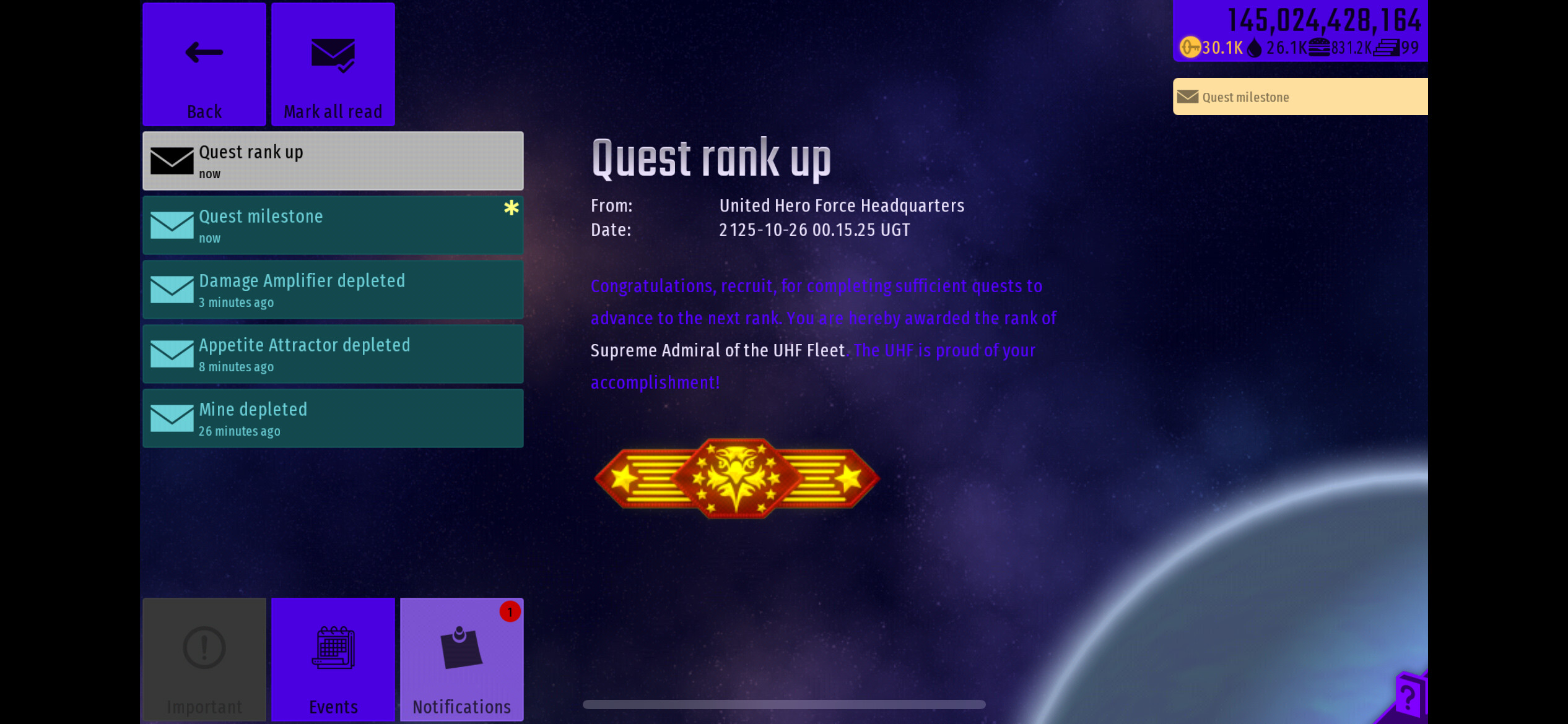 Yes oh my gosh I did it Okay guys I am now 20th Supreme Admiral of the UHF Fleet I finally finished all milestones for Admiral the 4th milestone took me 3 days because of Competitive missions but I finished I am not going to 1st milestone or 2nd and so on I have never reached Supreme Admiral of the UHF Fleet and here it is I reached Supreme Admiral of the UHF Fleet for the first time