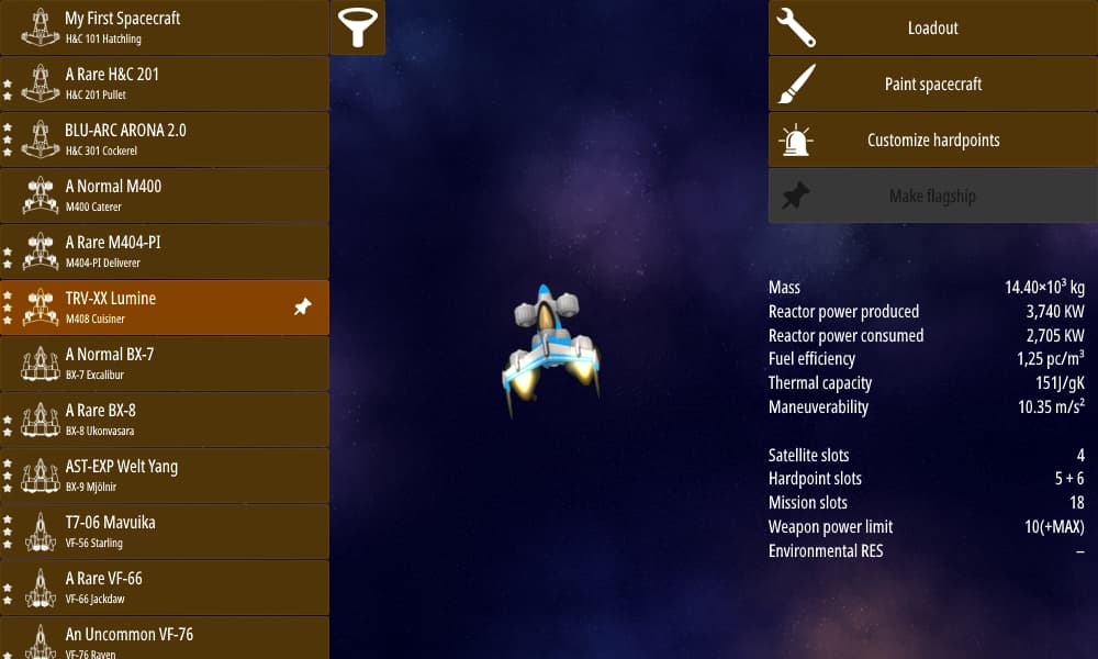 If there is no spacecraft after using filter, the game will say “There are no spacecrafts that match the filter.”. - Paint spacecraft** (pretty self-explanatory)