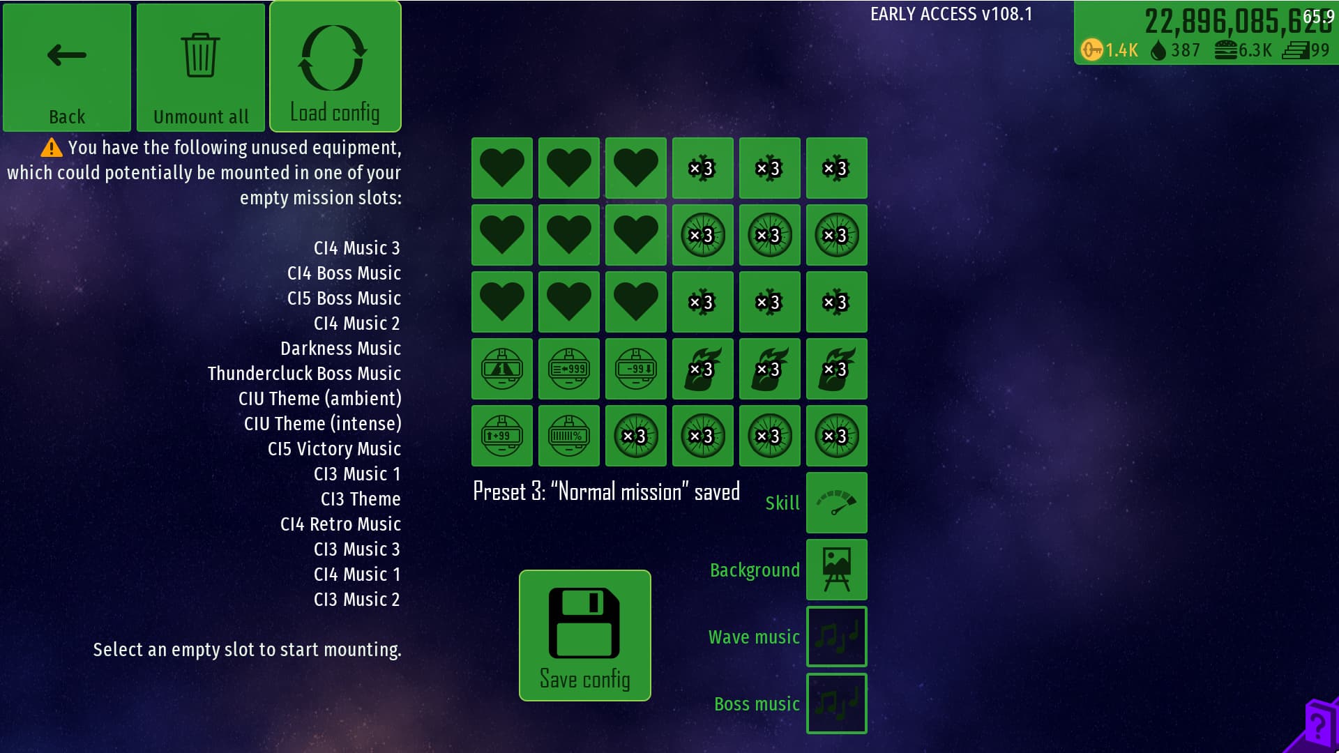This version is much more compact and less complex. Rather than having to manually save each different config, each config will have a dedicated button (A to E, shown underneath the config). Even though I’m concerned that this might be more vague and confusing for other players (plus I think my original concept looked cooler, gotta have some pride in your ideas), I think this would be a much more optimal choice while not sacrificing too much elegance. And I might not know much about programming, but I’m sure this would be easier to implement if iA were to add it.